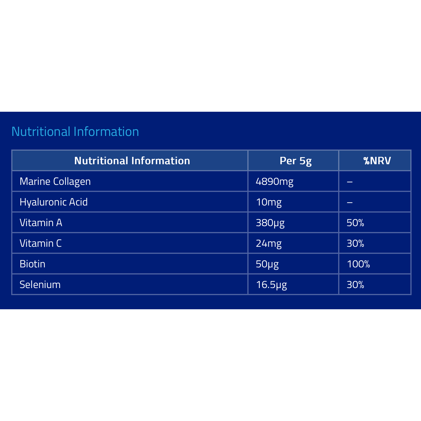 - Each serve typically provides 5000mg of Hydrolysed Marine Collagen + Hyaluronic acid