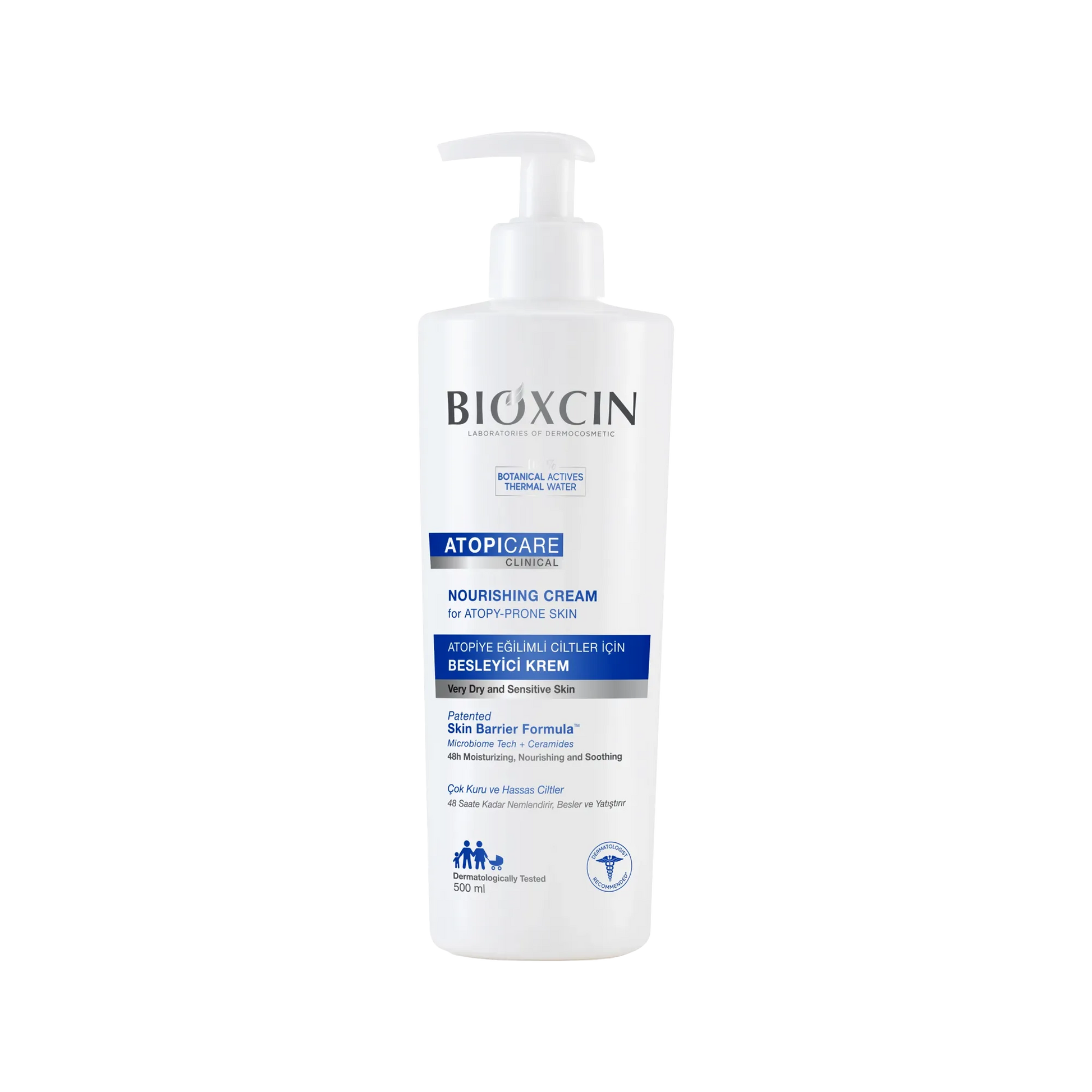 Bioxcin Atopicare Nourishing Cream is a dermocosmetic moisturizer crafted for very dry and sensitive, atopy‑prone skin. The formula, as indicated on pack, combines botanical actives with thermal water and a patented Skin Barrier Formula featuring ceramides and microbiome-supporting technology. This synergy helps replenish moisture, reinforce the skin’s protective barrier, and calm visible signs of dryness.