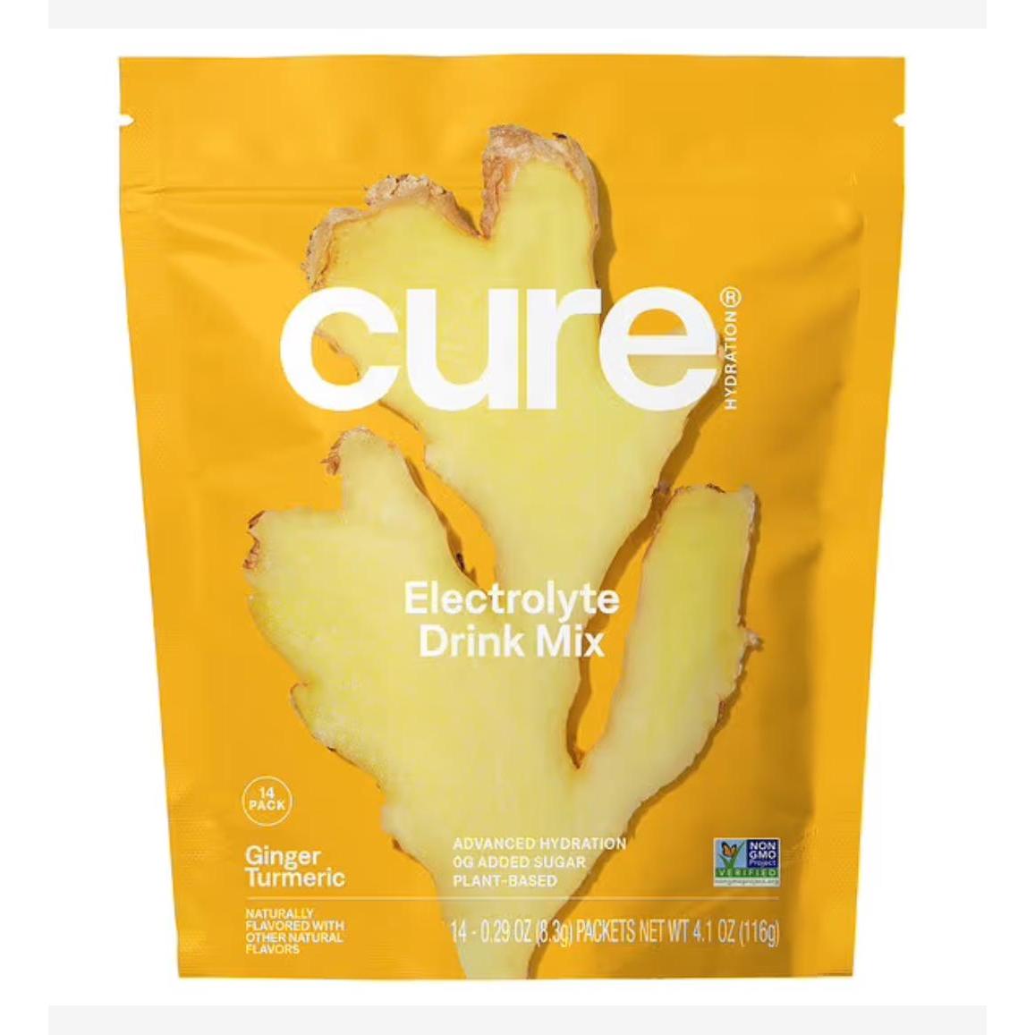 Cure Hydration Hydrating Electrolyte Drink Mix Ginger Turmeric 14 Packs