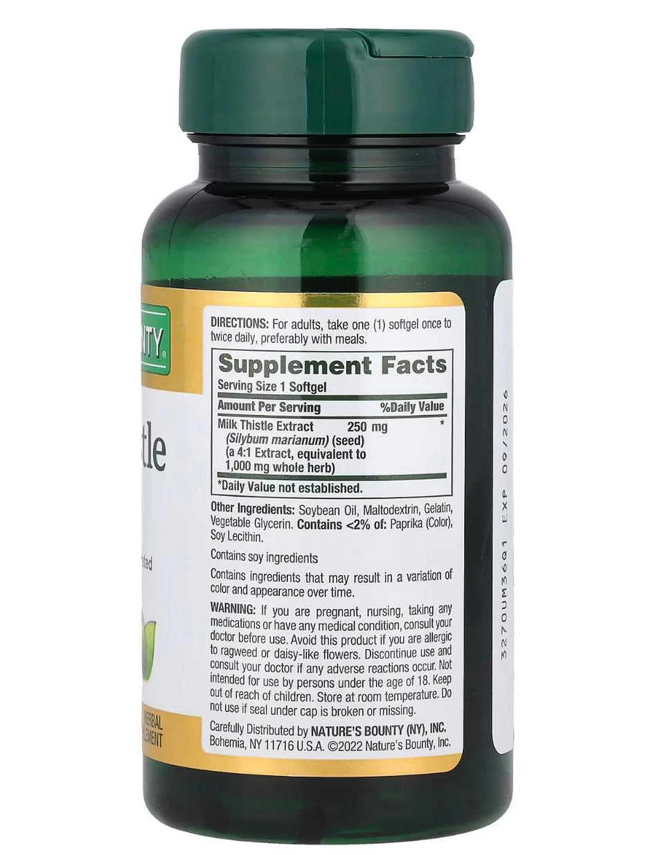 Nature's Bounty Milk Thistle 1000mg, Herbal Health Supplement, Gluten Free, Rapid Release Softgels, 50 Ct