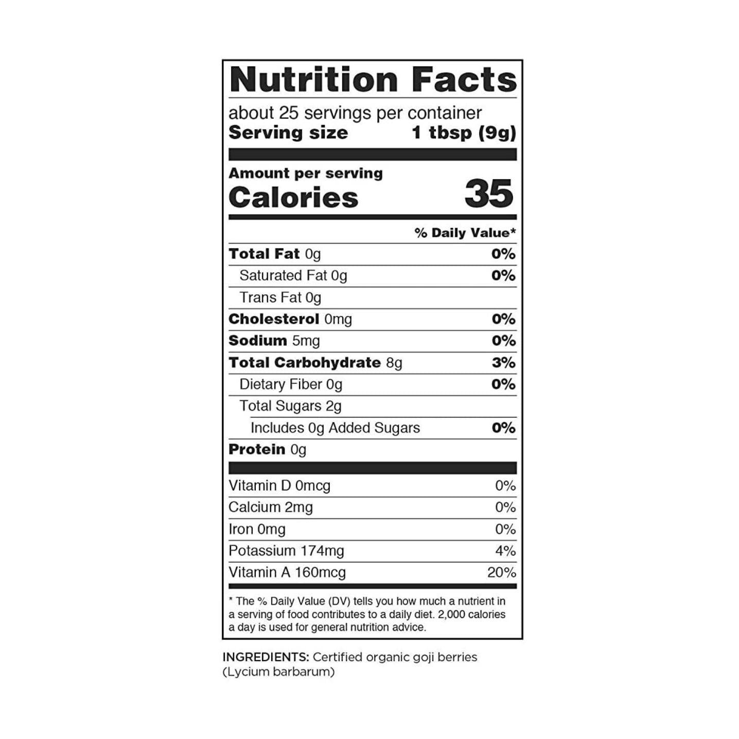 - Made from freeze-dried organic goji berry juice for concentrated nutrition