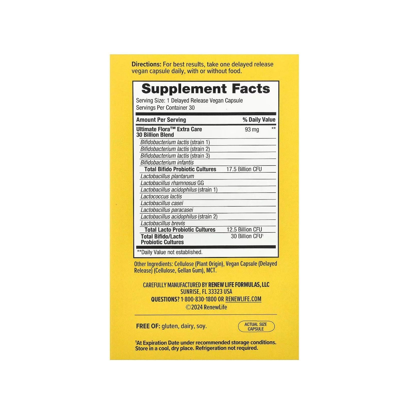 Renew Life Ultimate Flora Probiotic Extra Care 30 Billion CFU 30 Go Back CAP