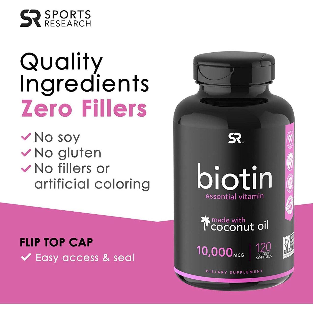 Sports Research High Potency Biotin 10,000mcg Vitamin B7 120 Veggie Softgels