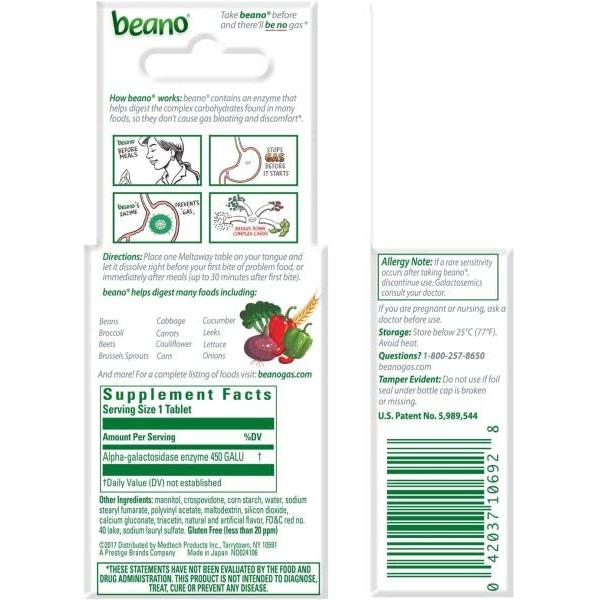 - Use for the right problem: Use beano® Meltaways® if you experience the symptoms of stomach gas caused by many healthful foods.