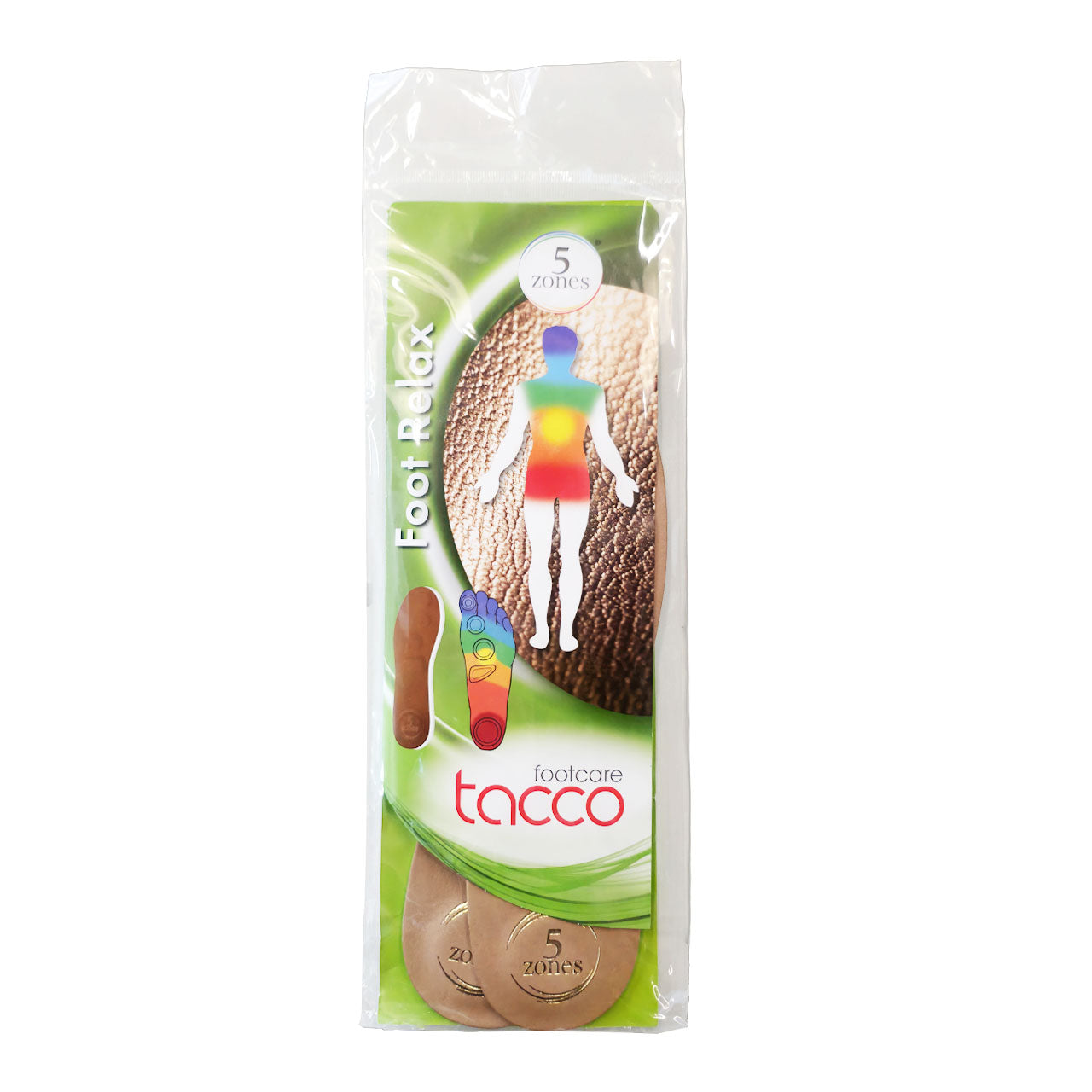 TACCO foot relax insole – Wellness insole. The reflex zone concept is based on millennia of medical experience. There are defined connections between the zones on the feet and specific parts of the human body. The stimulation and activation of these specific zones have a positive effect on the corresponding organs; thereby, self-healing processes and regulatory mechanisms are activated. As a result, the body‘s functional processes are harmonized.