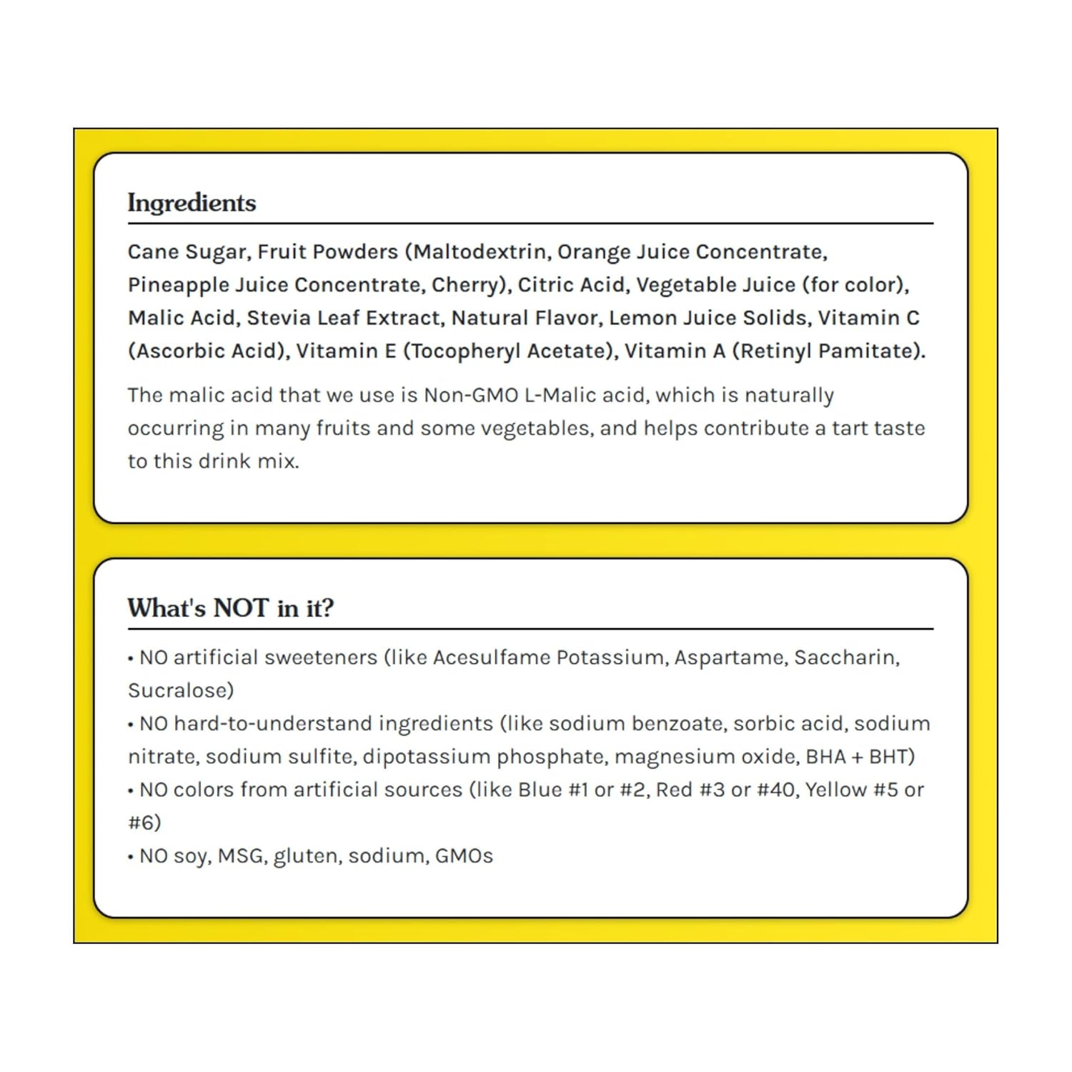 - Non-GMO, no artificial sweeteners, flavors, or preservatives