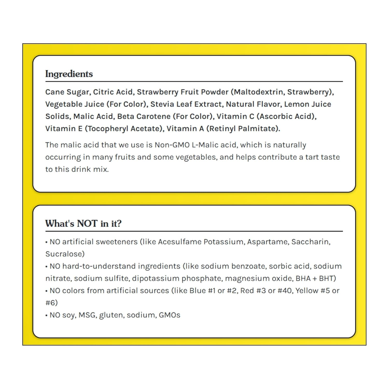 - Strawberry Banana flavored kids drink mix; 10 packets x 3.5 g