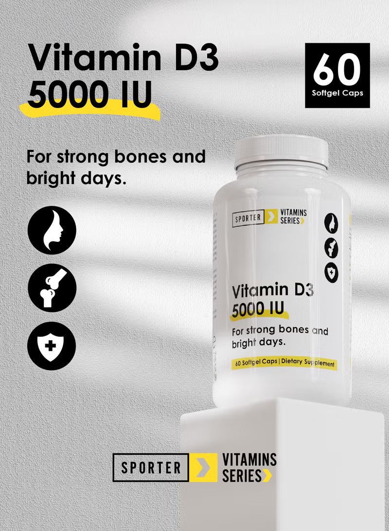 سبورتر فيتامين دال 3 5000 وحدة دولية، 60 كبسولة هلامية