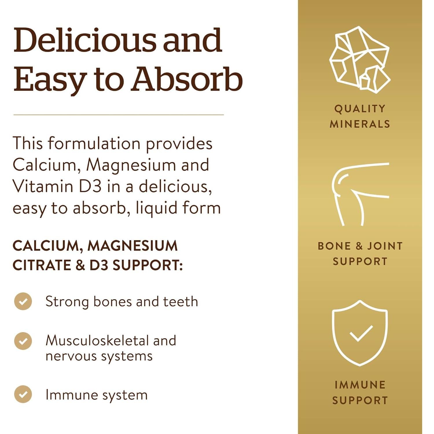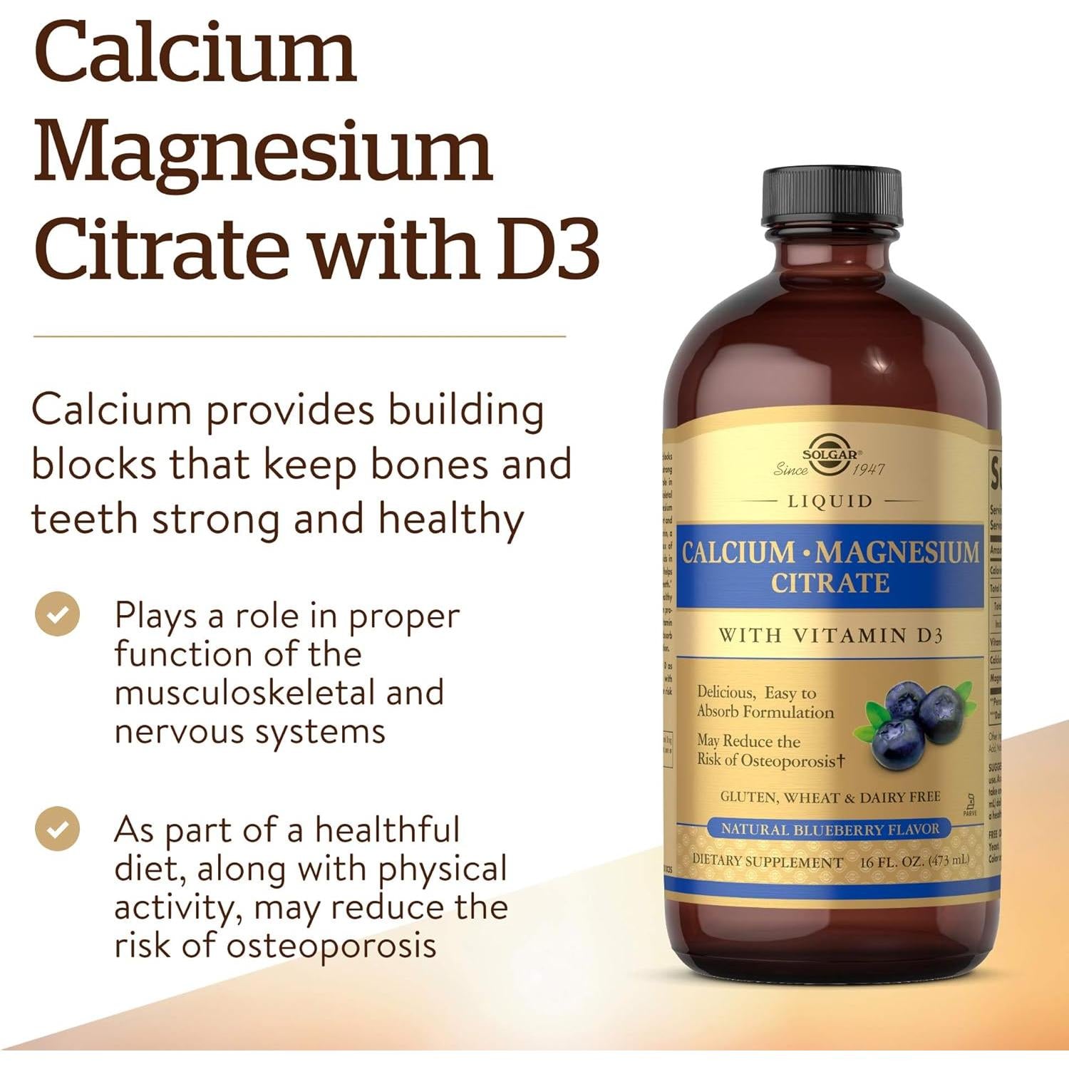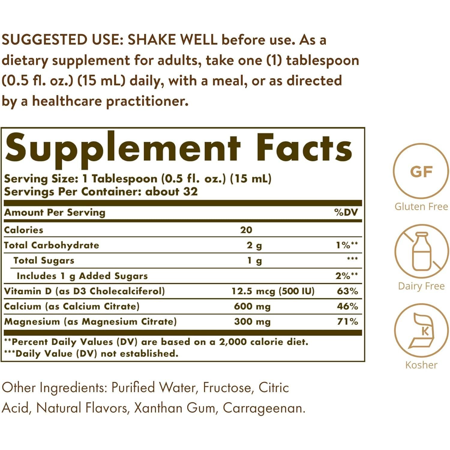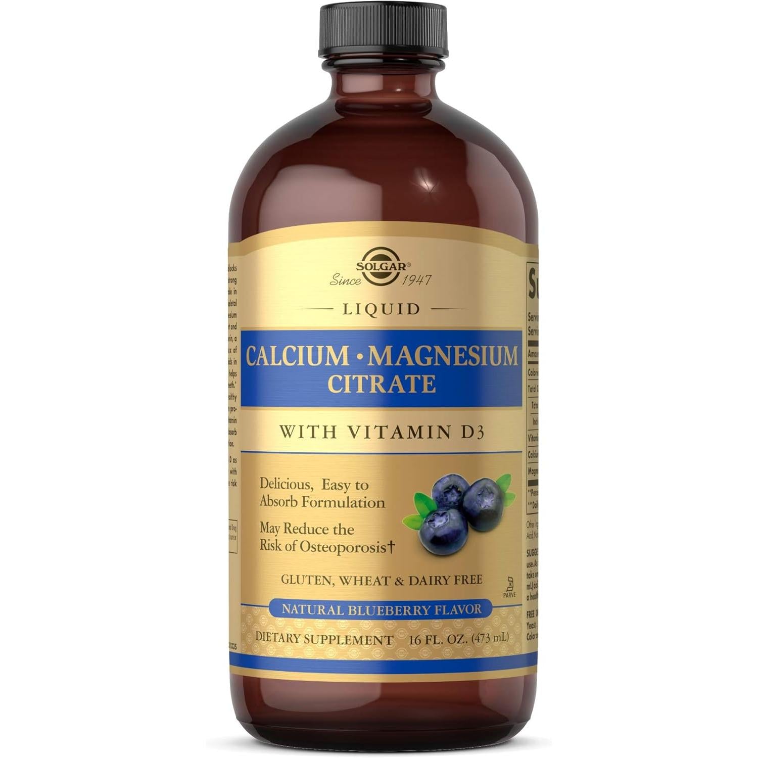 سولجار سترات الكالسيوم والمغنيسيوم السائل مع فيتامين د3 بنكهة التوت الأزرق 473 مل