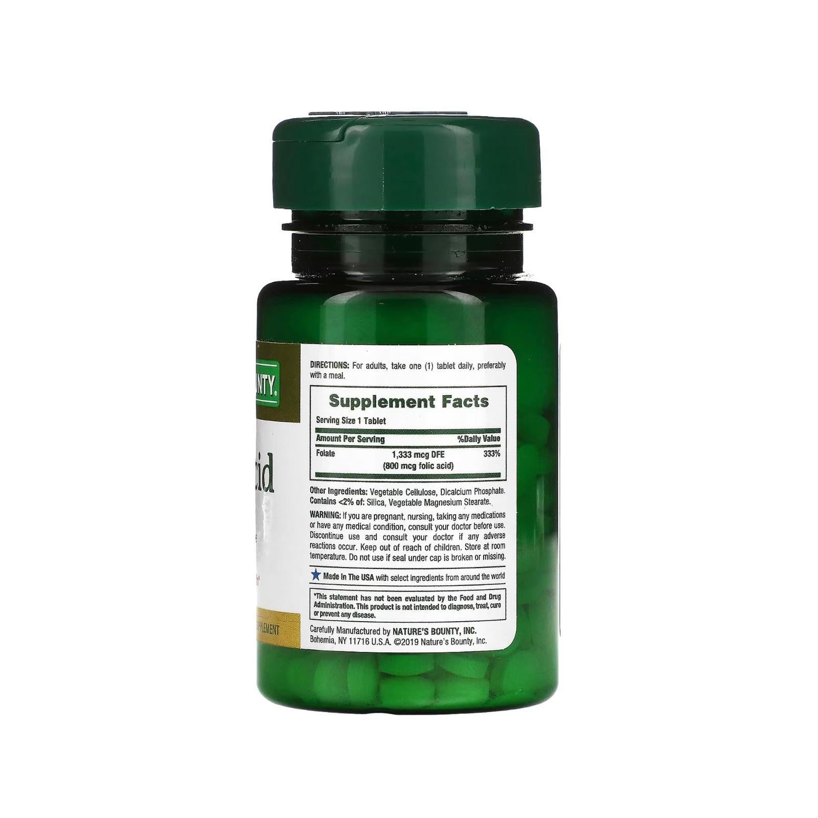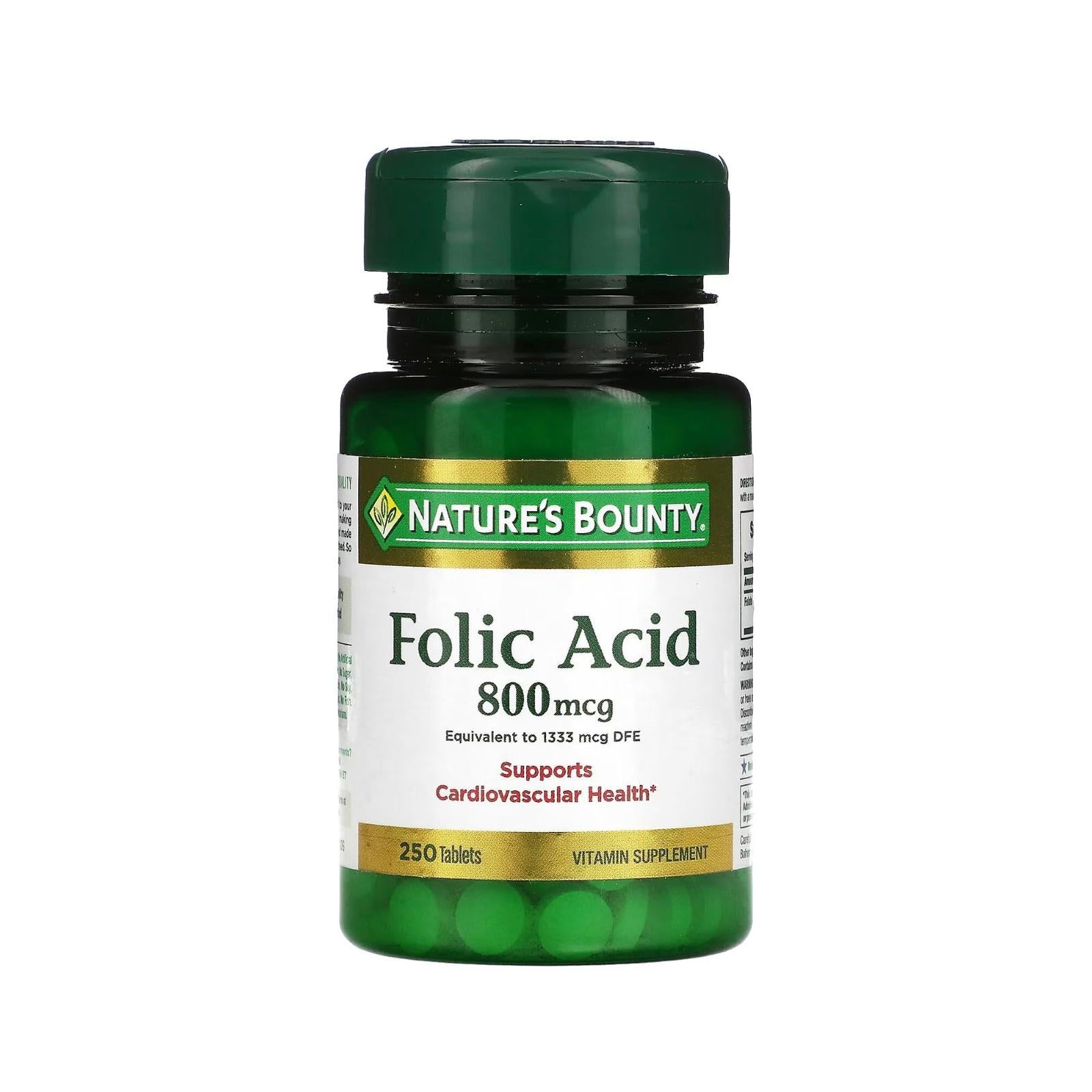 ناتشورز باونتي مكمل حمض الفوليك، يدعم صحة القلب والأوعية الدموية، 800 ميكروغرام، 250 قرص مدمج