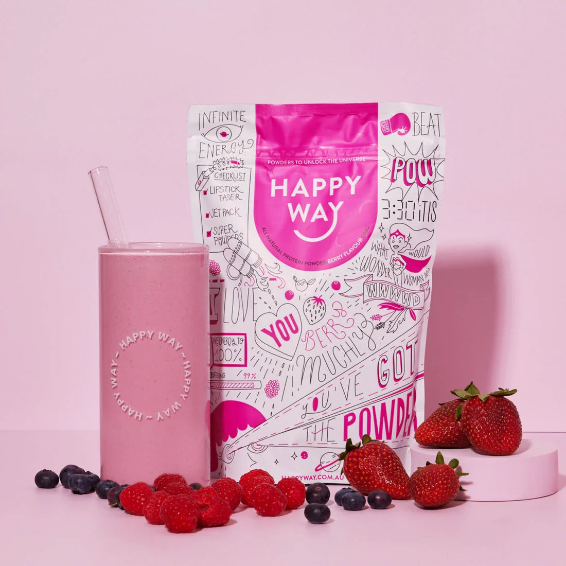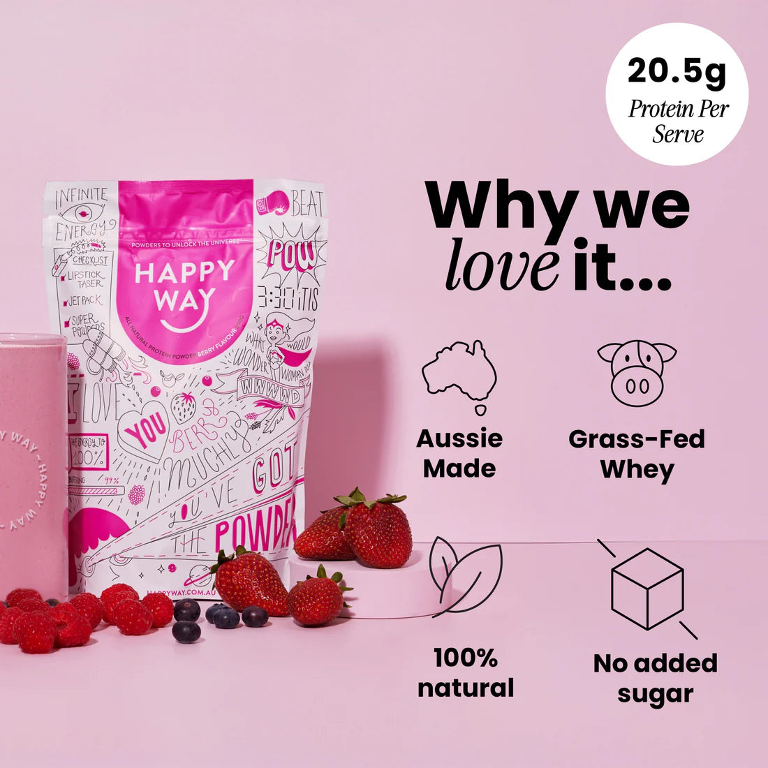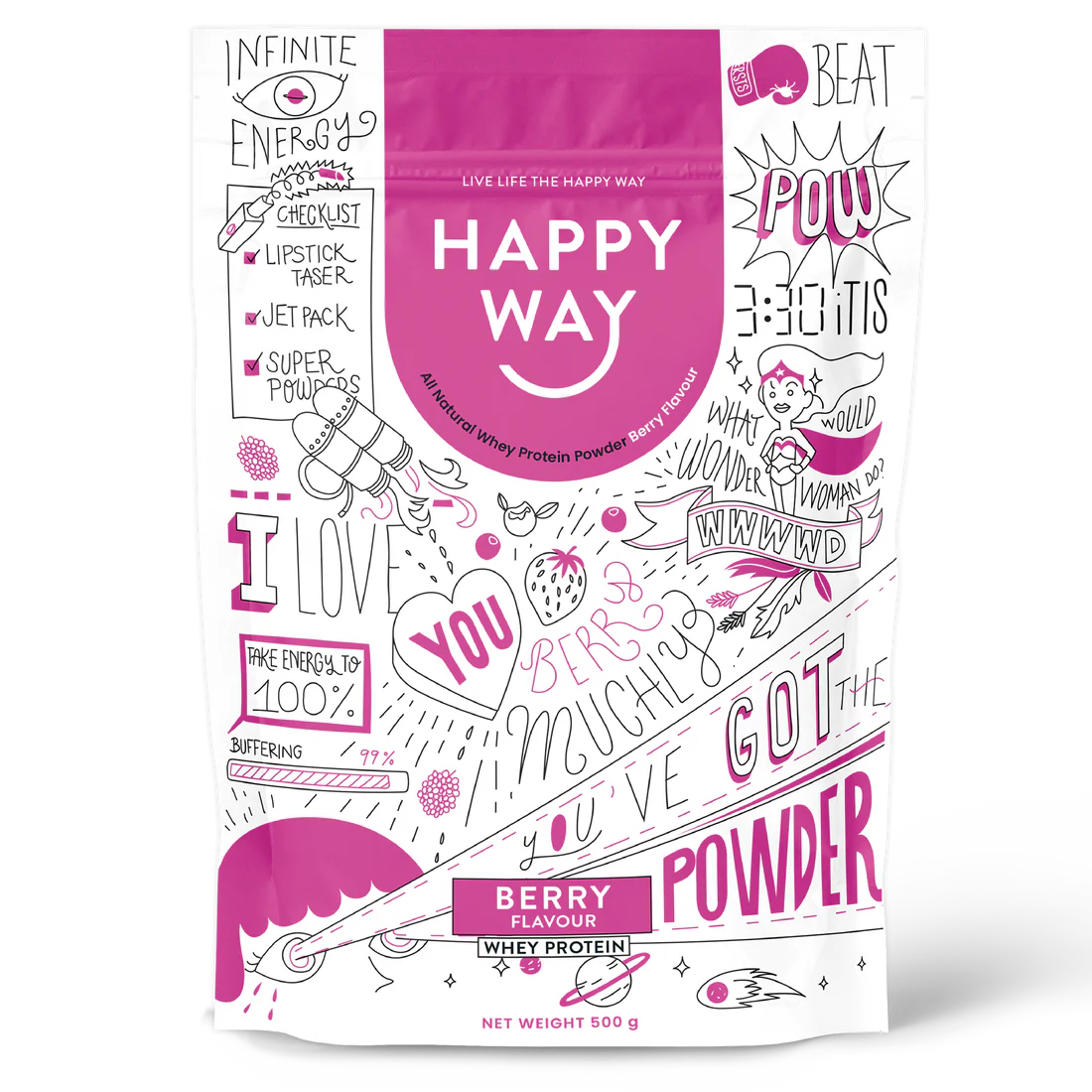 هابي واي مسحوق بروتين مصل اللبن الطبيعي العضوي بنكهة التوت 500غم