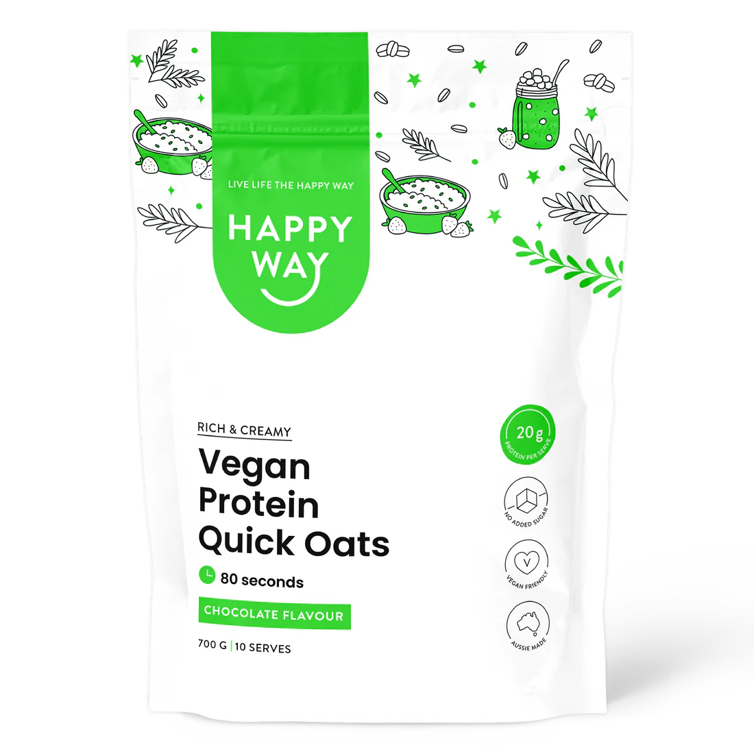 هابي واي شوفان سريع التحضير مع بروتين نباتي بالشوكولاتة 700غم