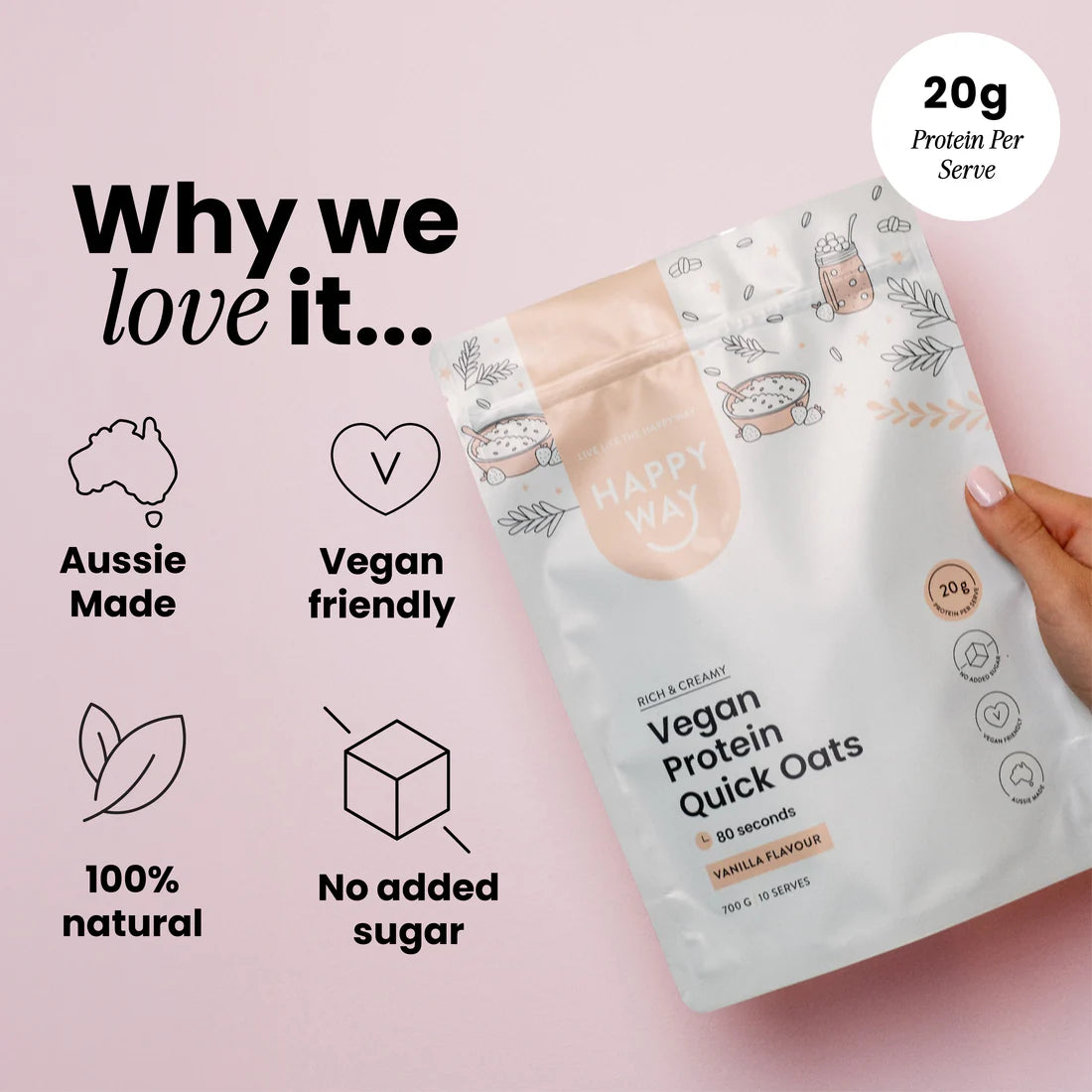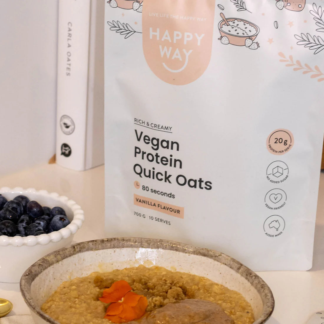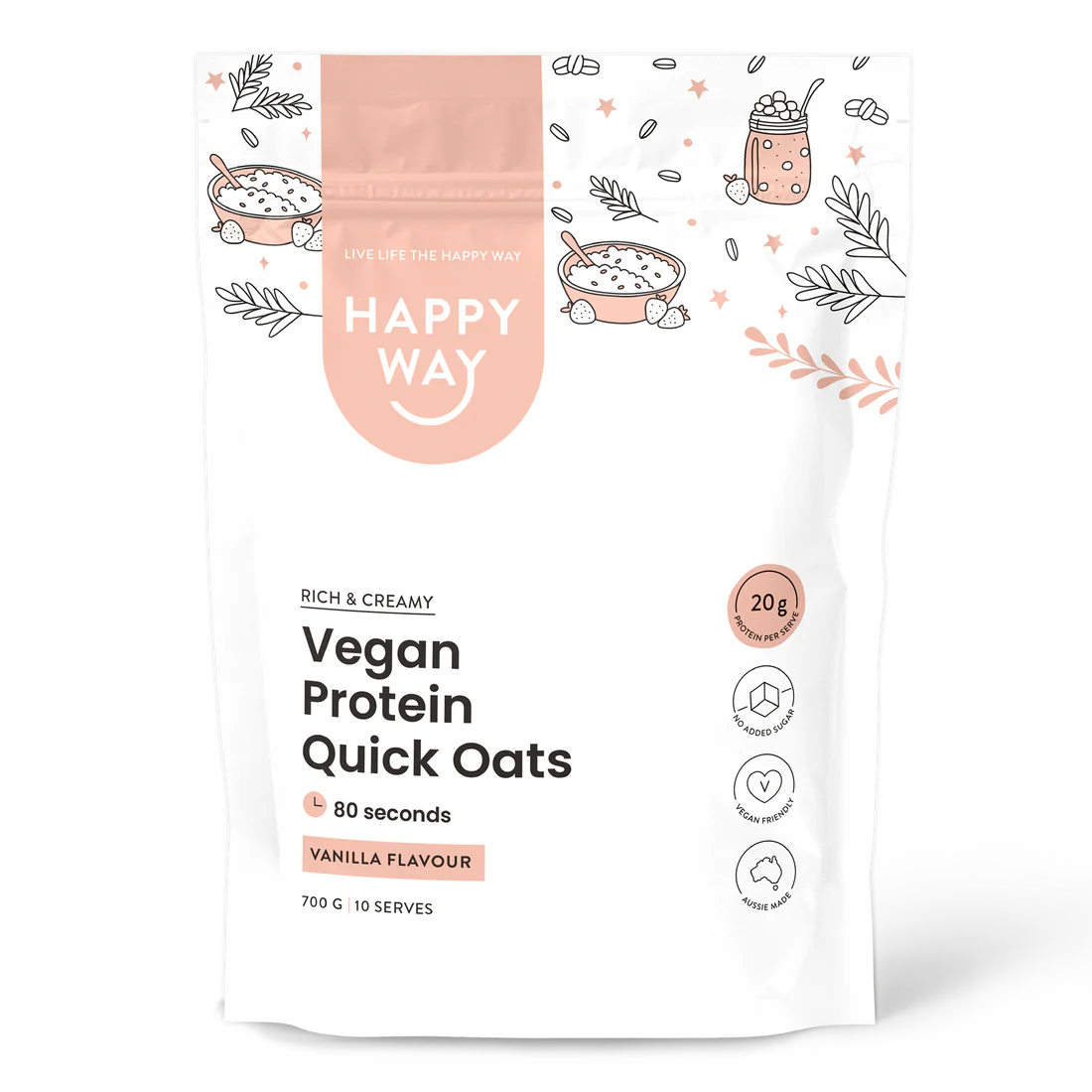 هابي واي شوفان سريع التحضير مع بروتين نباتي بالفانيليا 700غم