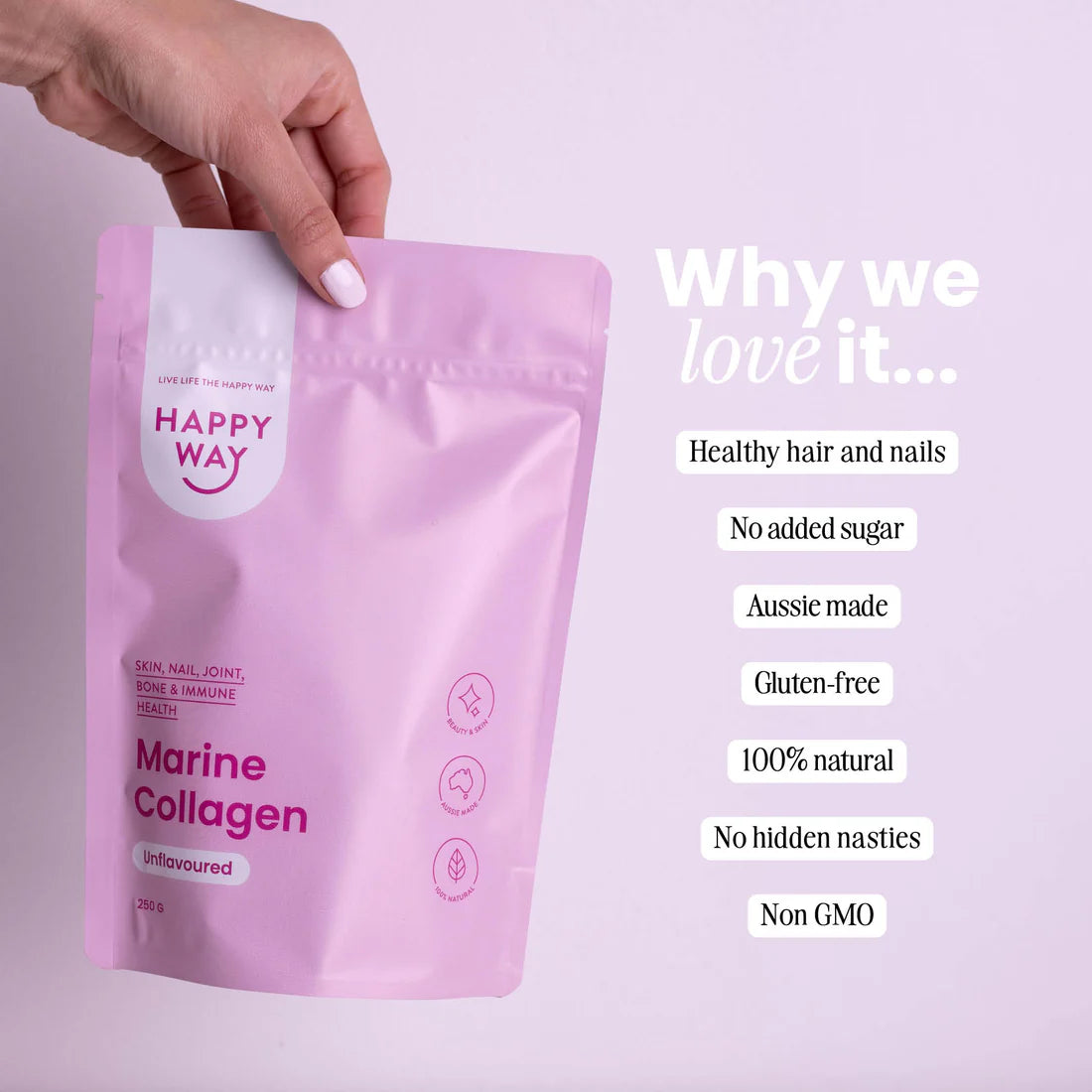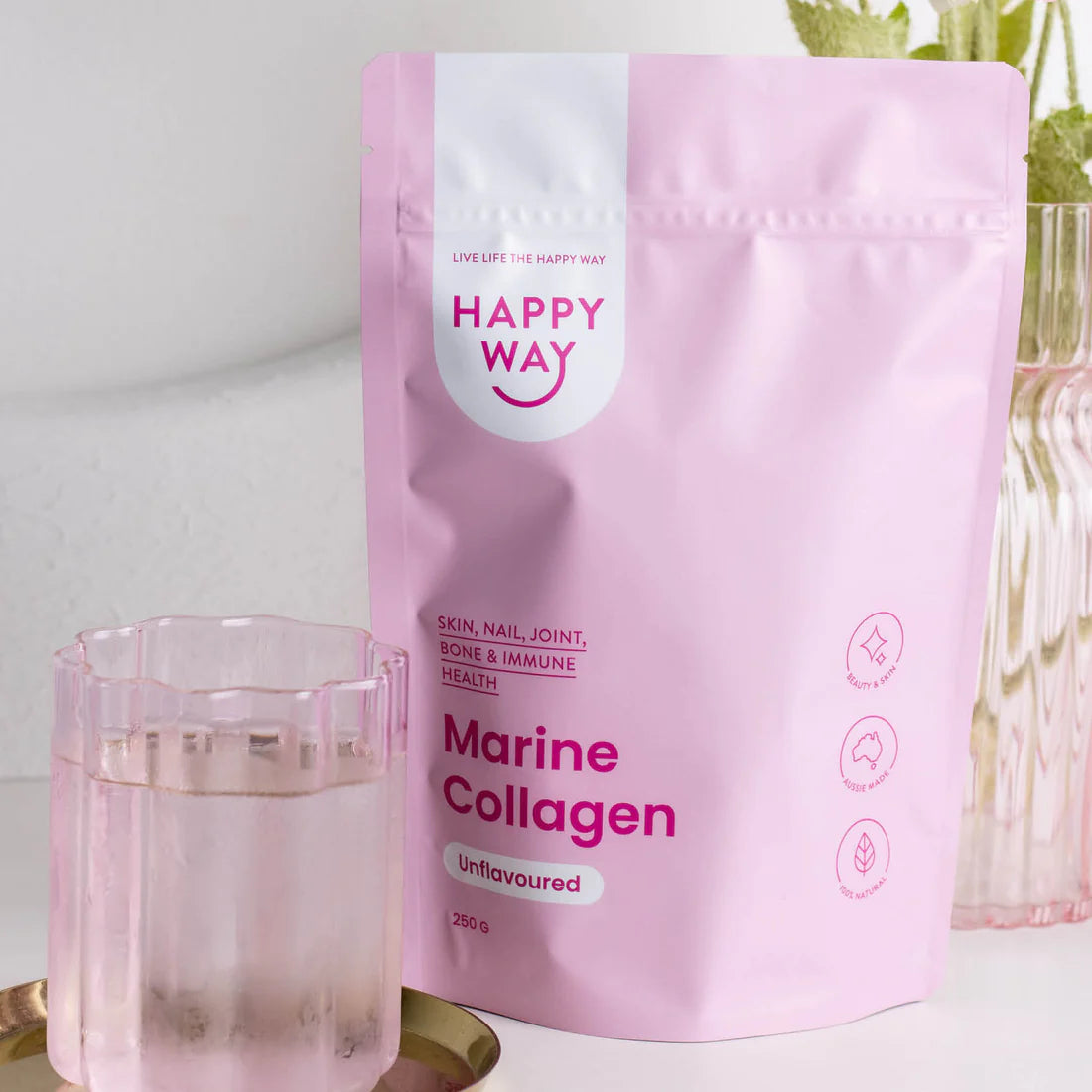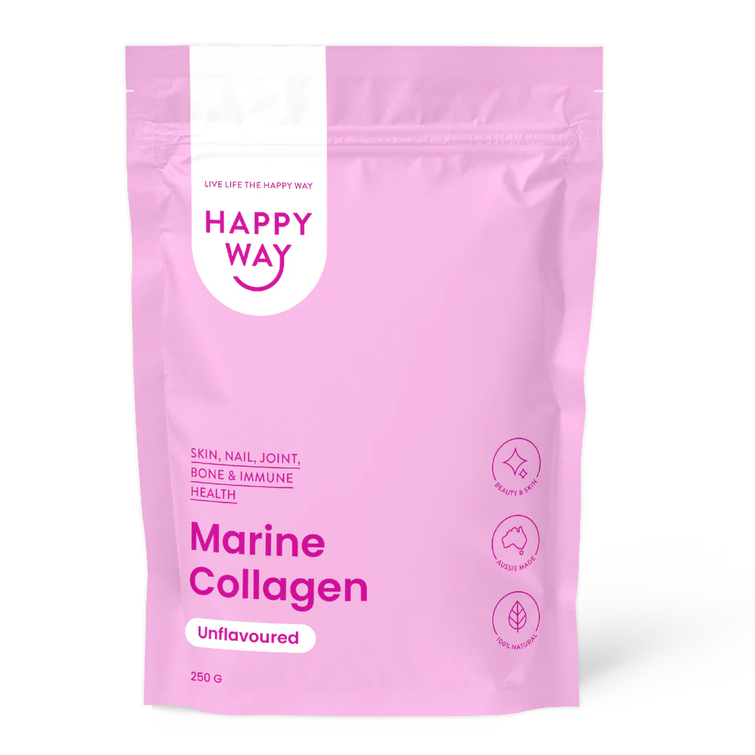 هابي واي مسحوق الكولاجين البحري الصافي بدون نكهة للبشرة والشعر ودعم المفاصل 250غم