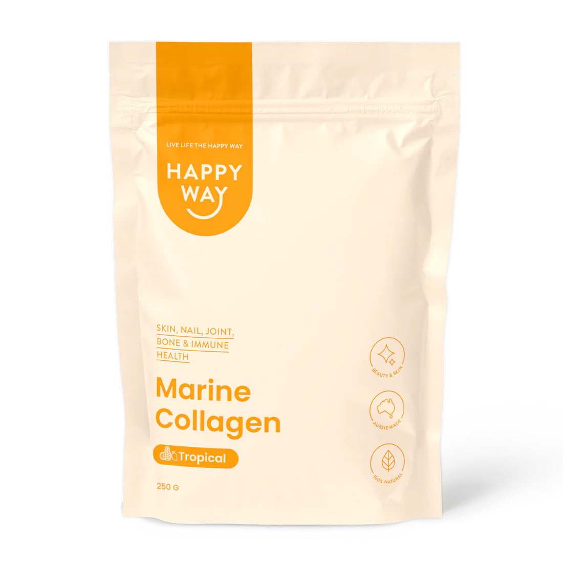 مسحوق الكولاجين البحري هابي واي - بنكهة استوائية لصحة البشرة والشعر والمفاصل 250غم