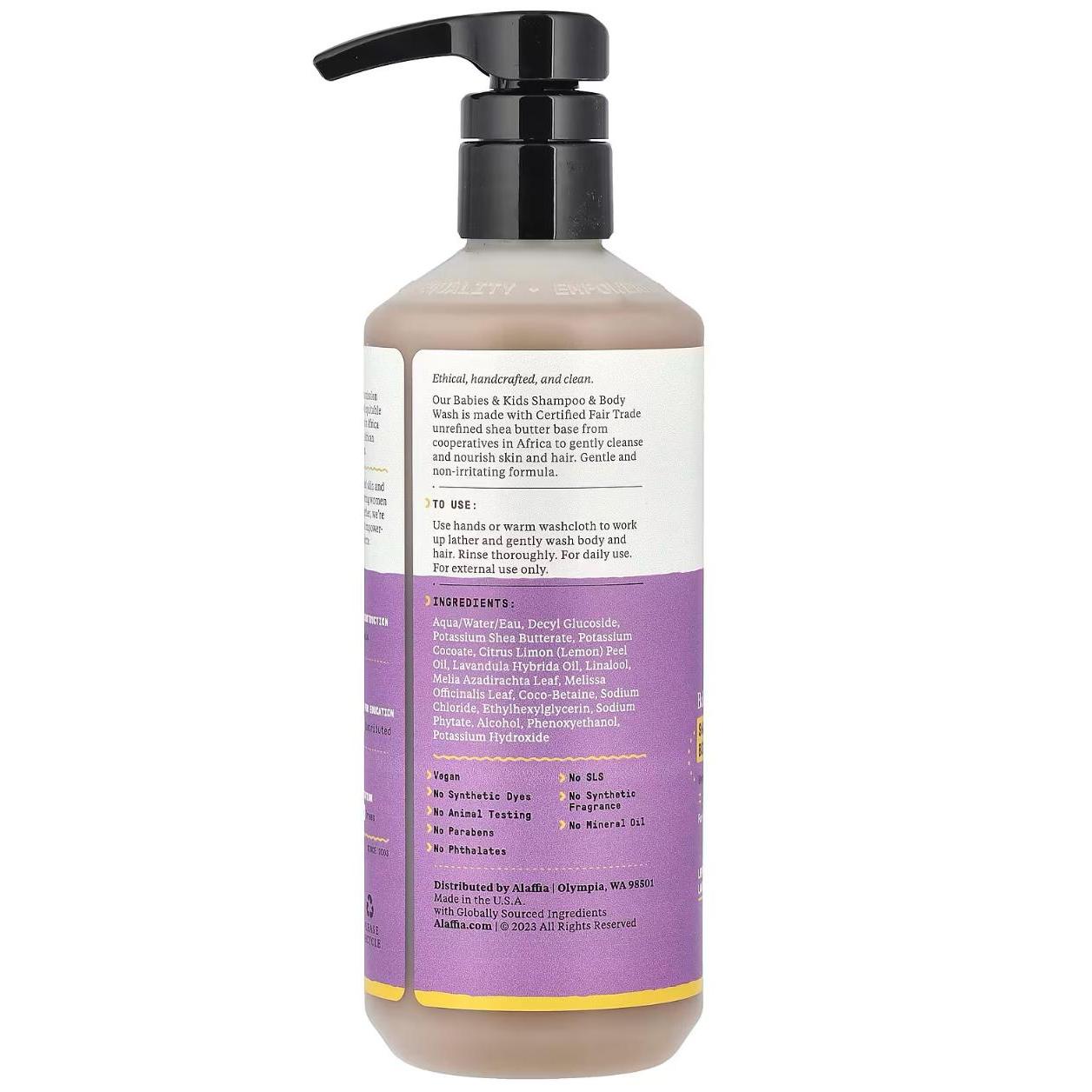 شامبو وغسول للجسم من ألافيا للأطفال والرضع، دعم لطيف ومهدئ للشعر والبشرة الناعمة بزبدة الشيا والليمون واللافندر 473 مل
