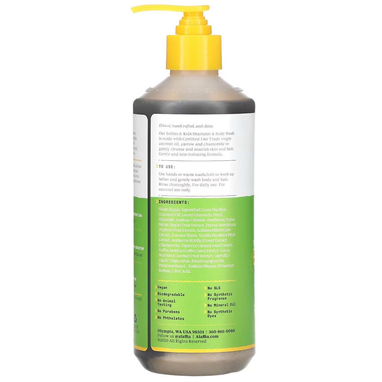 شامبو وغسول للجسم بجوز الهند من Alaffia EveryDay للأطفال والرضع، لطيف وغير مهيج للشعر والبشرة الناعمة مع اليارو والبابونج، تجارة عادلة، جوز الهند والبابونج 473 مل
