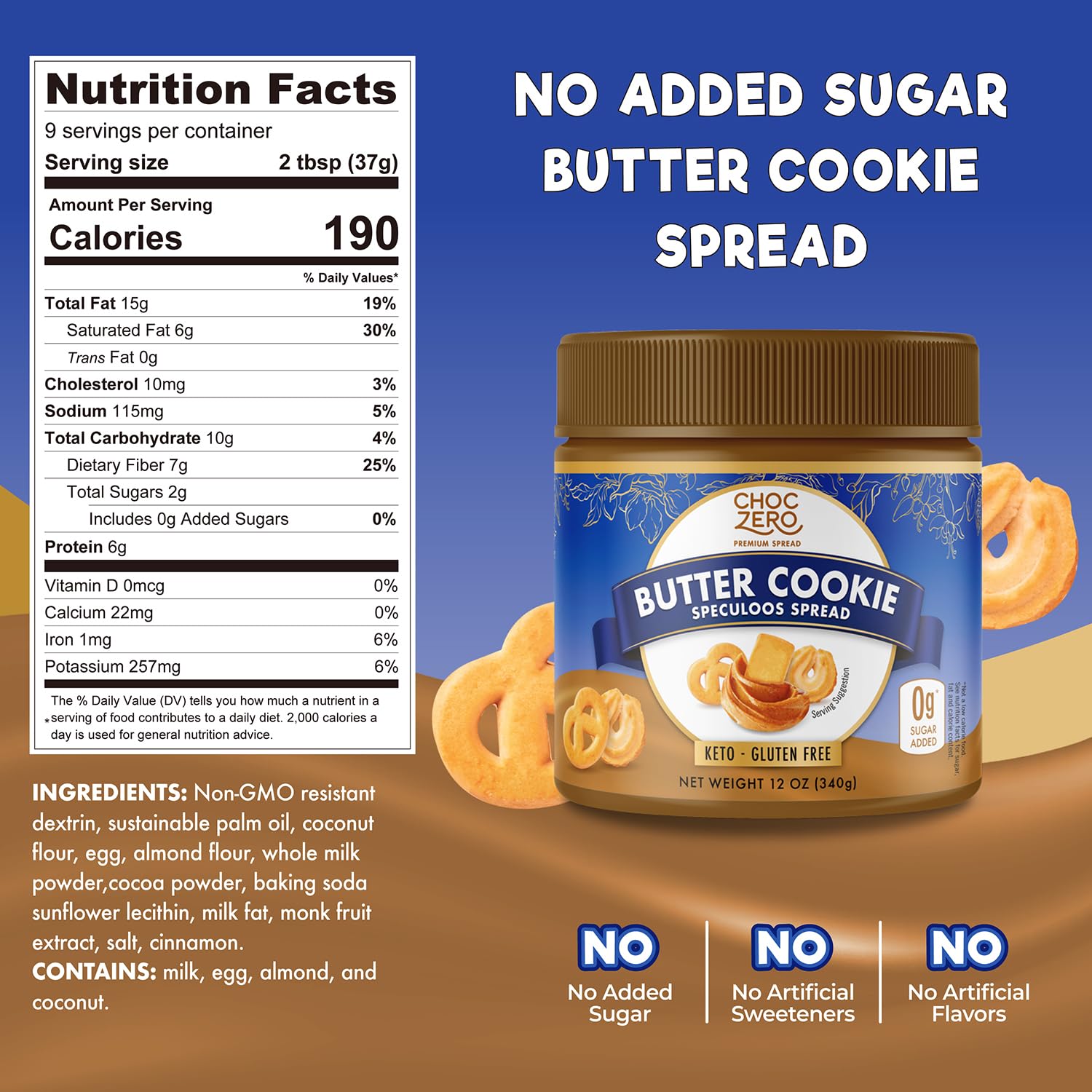 بسكويت زبدة تشوك زيرو سبيكولوس سهل التحضير، مناسب للكيتو، بدون إضافة سكر، محلى بفاكهة الراهب، 340 جرام، خالٍ من الغلوتين