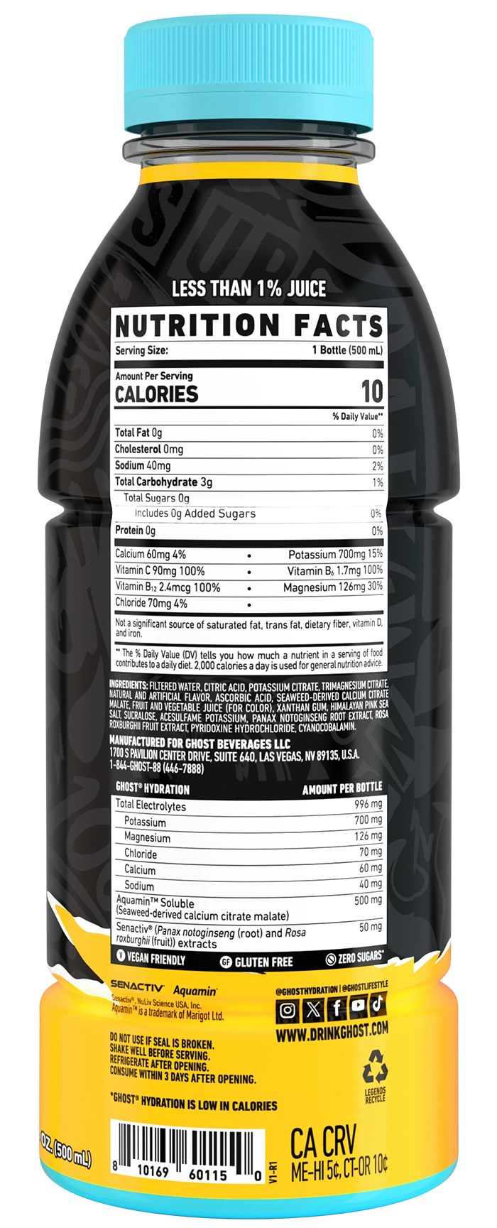 Ghost Hydration Drink Strawbango 500ML هو مشروب ترطيب ضمن فئة المشروبات الرياضية مصمم لتجديد السوائل والمعادن التي يفقدها الجسم مع العرق والنشاط اليومي. يجمع بين إلكتروليتات أساسية لدعم توازن الماء في الجسم ونكهات فاكهية منعشة تساعدك على الحفاظ على الشرب المستمر. بتركيبته الخالية من السكر والكافيين، يوفر هذا المشروب خياراً نظيفاً وعملياً للترطيب في أي وقت دون ارتفاعات سكرية أو منبّهات. تم اختيار هذا المنتج بعناية من فريق هيلث لاند ليلائم أسلوب الحياة الصحي ويركّز على مكوّنات نظيفة وجودة علامة Ghost المعروفة في عالم التغذية الرياضية.