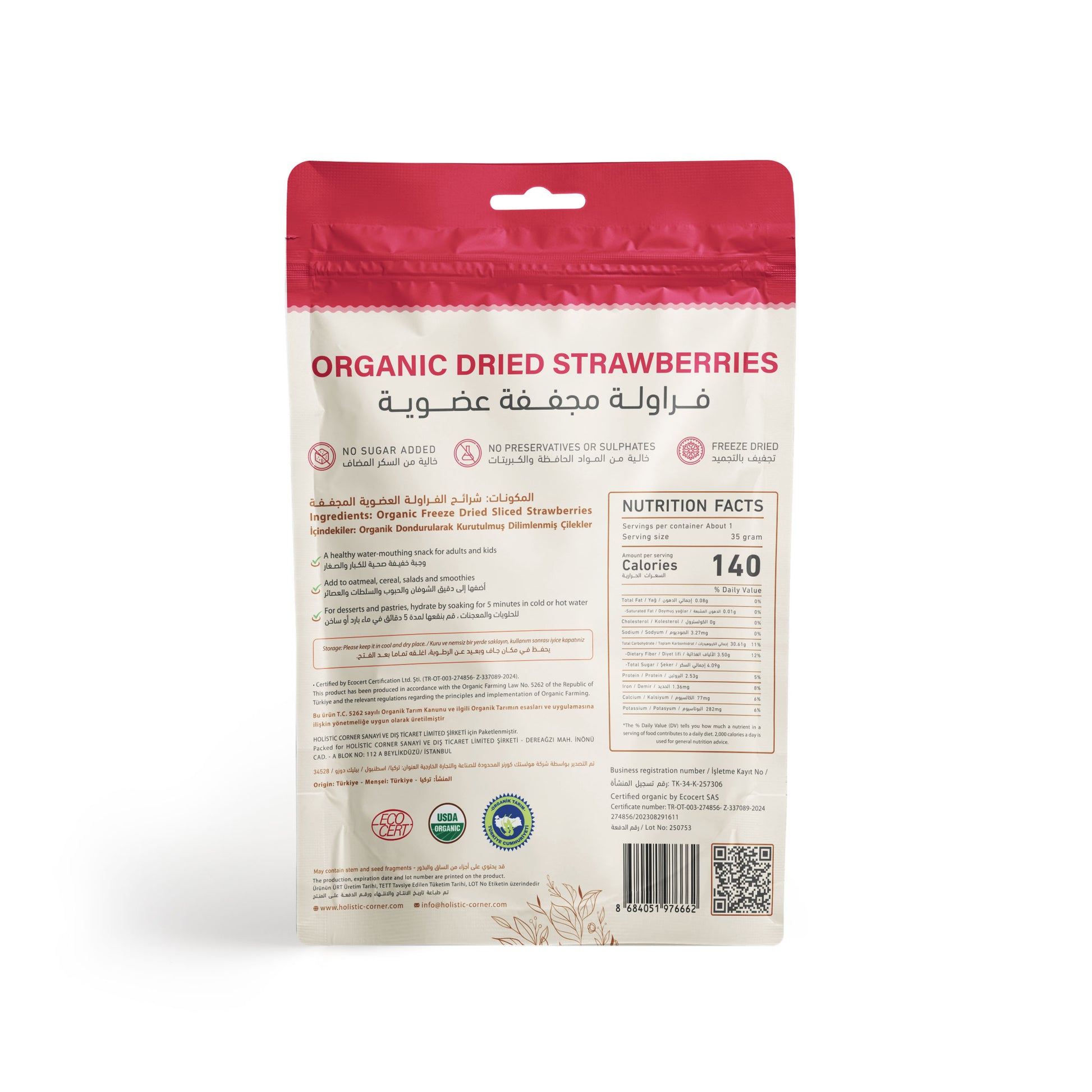 هوليستيك كورنر فراولة مجففة عضوية | ٣٥ غرام