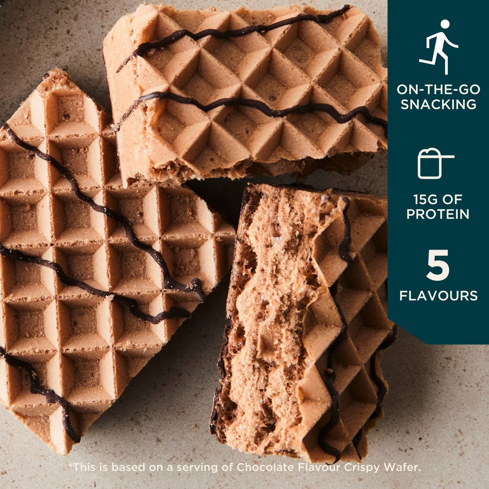 - تركيبة ويفر بطبقات مقرمشة وحشوة بروتينية كريمية بنكهة الشوكولاتة