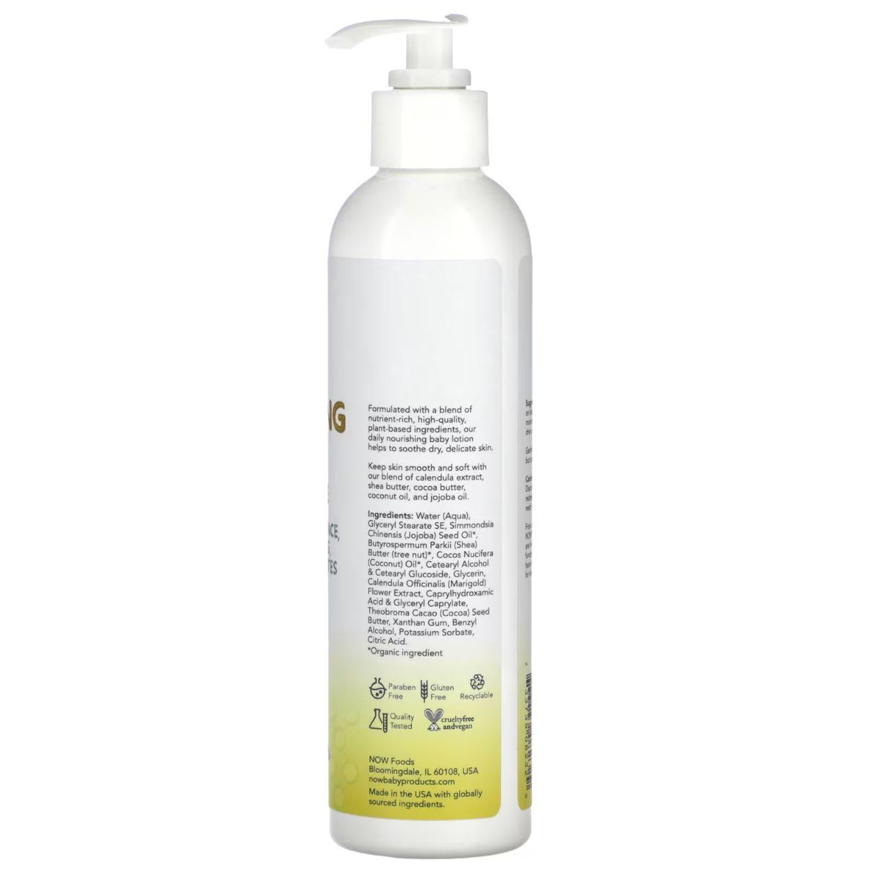 لوشن تغذية الأطفال من NOW Foods بتركيبة خالية من العطر صُمم خصيصاً لفئة Baby & Toddler – Baby Health للعناية اليومية بالبشرة الحساسة. يوفر ترطيباً لطيفاً وطويل الأمد ويساعد على تهدئة الجفاف والاحمرار، مع دعم الحاجز الطبيعي للبشرة كي تبقى طرية ومرنة. العبوة المزوّدة بمضخة تسهّل الاستخدام مع كل تغيير حفاض أو بعد الاستحمام.
