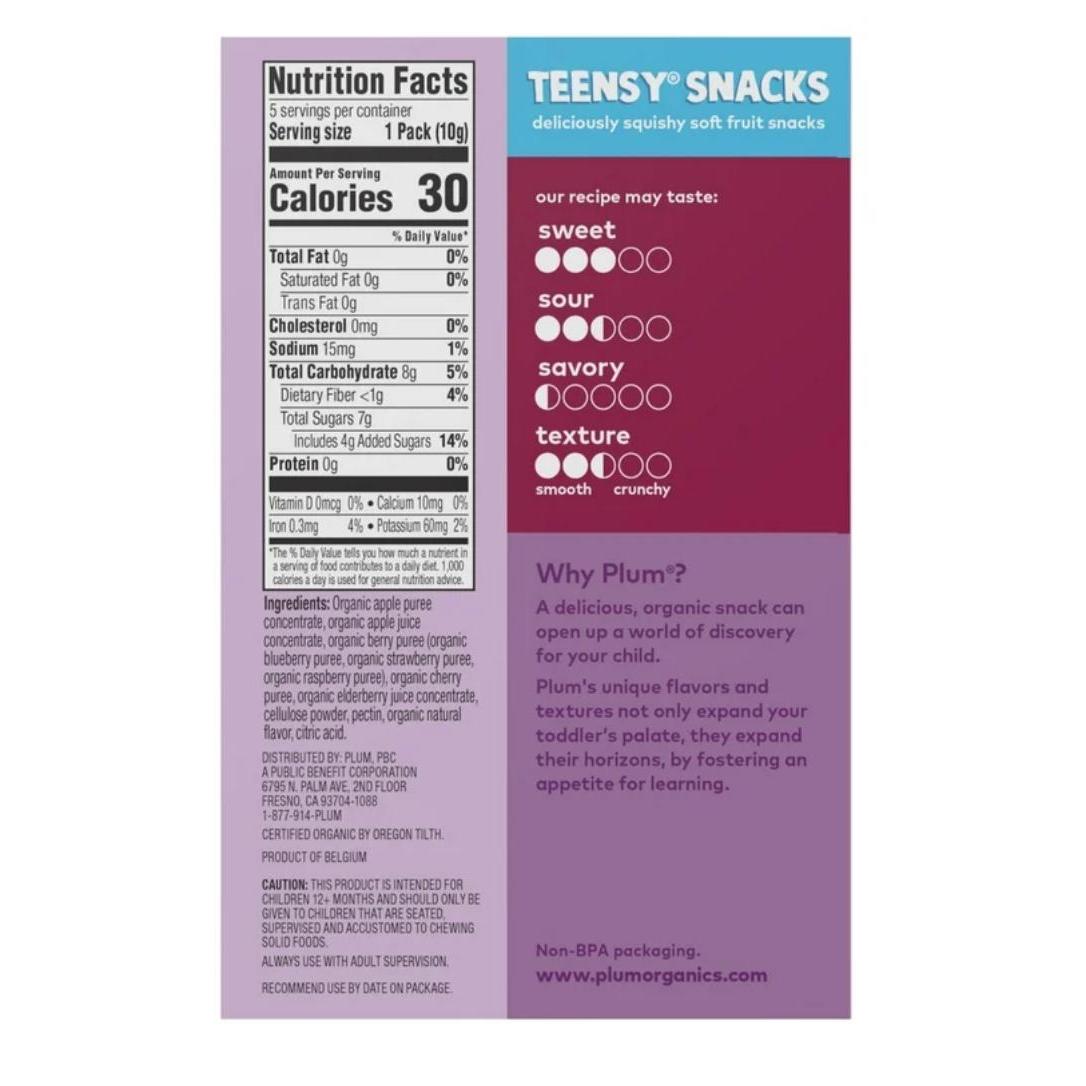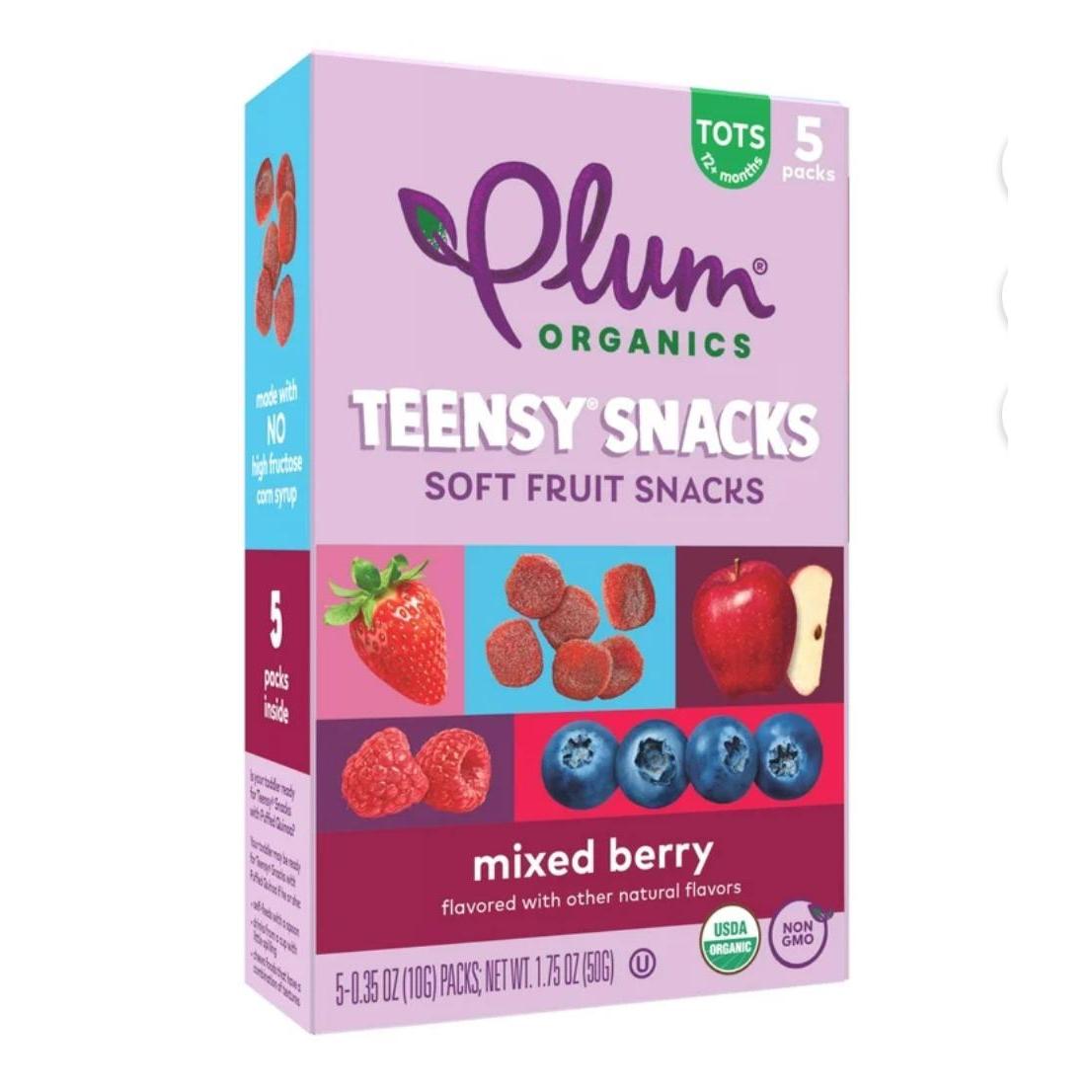 Plum Organics Teensy Fruits Snacks Mixed Berry هي وجبات فاكهية عضوية طرية للأطفال الصغار ضمن فئة Baby & Toddler Food – Baby Snacks. صُممت بملمس ناعم سهل الإمساك والمضغ لتشجيع مهارات التغذية الذاتية منذ عمر 12 شهرًا.