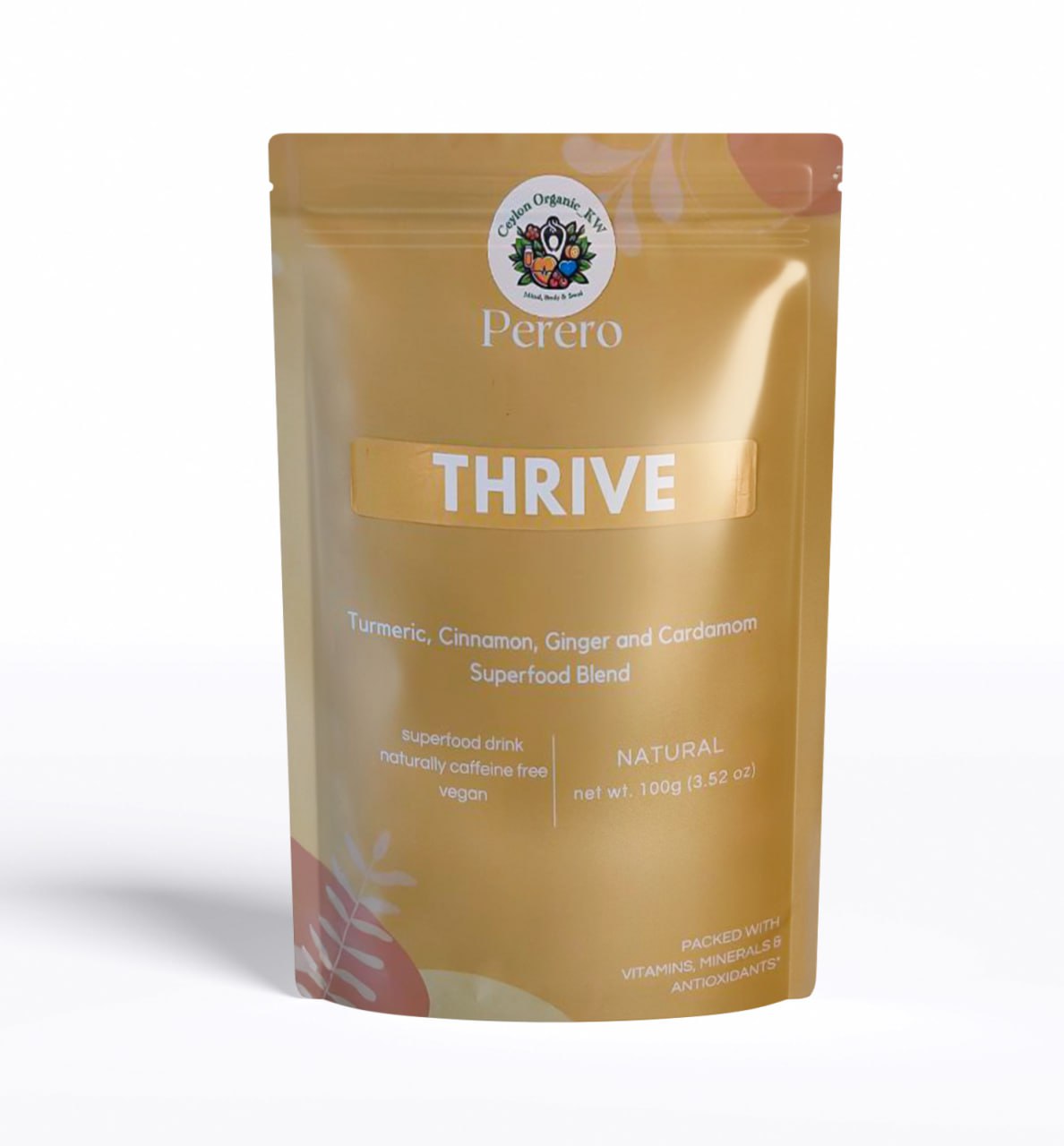 مشروب ثرايف سوبر فود مع الكركم والقرفة والزنجبيل والهيل، خالي من الكافيين بشكل طبيعي، نباتي، 100 جرام